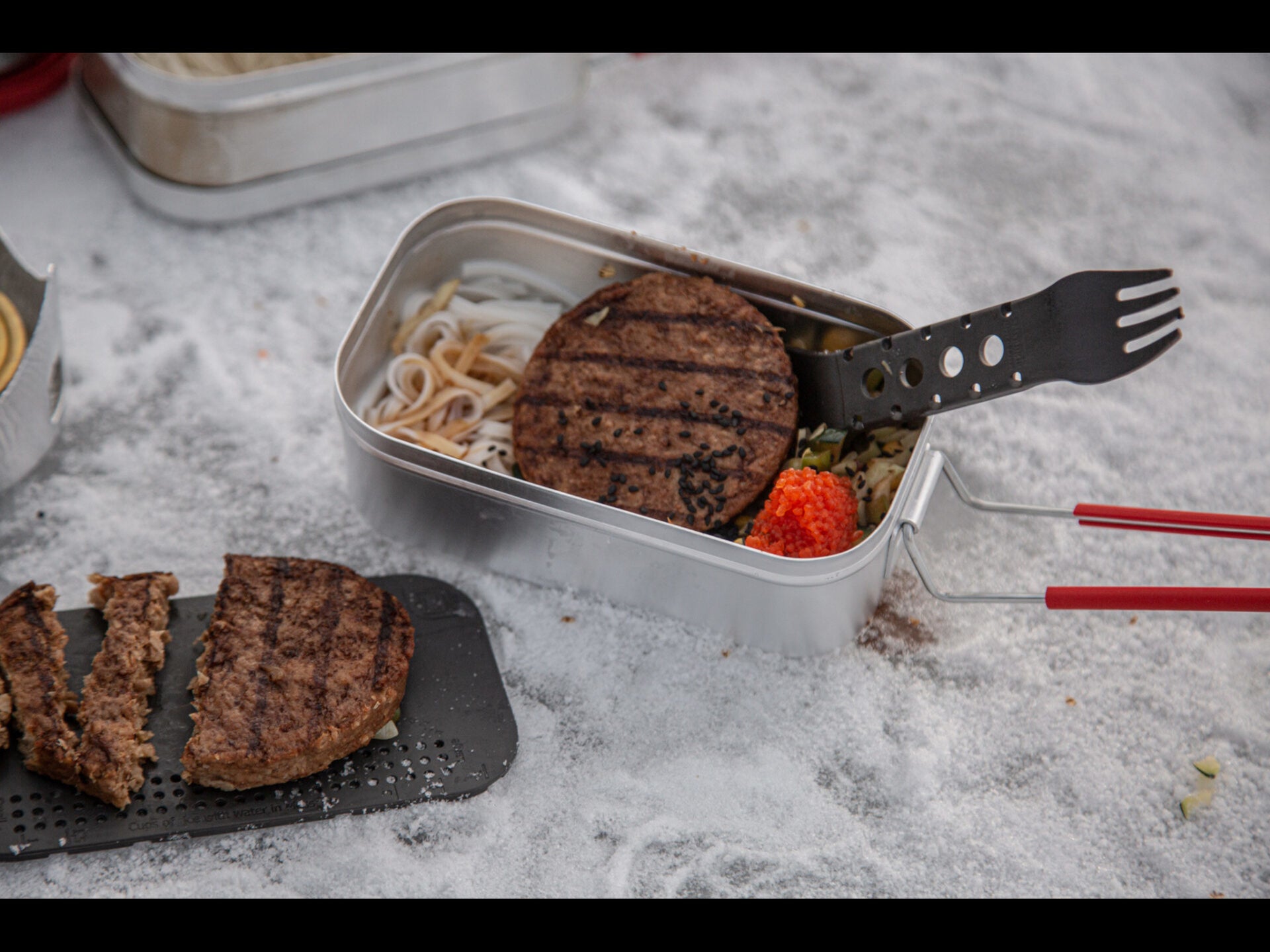 Multidisc that can be used in multiple ways, as a colander, cutting board and to measure water and rice. Fits both Mess tin Small and Large. EcoPaXX ™ Polyamide from 70% Bio-based material.
