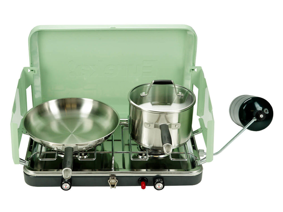 Cook the perfect meal for the crew on camping weekends with the Ignite Camping Stove, constructed with rugged, thick-gauge steel to deliver many years of use in the outdoors. Great for small groups, the Ignite offers an innovative simmer control for high-precision flame adjustment; 10,000 BTU burners go from a light simmer to full output.