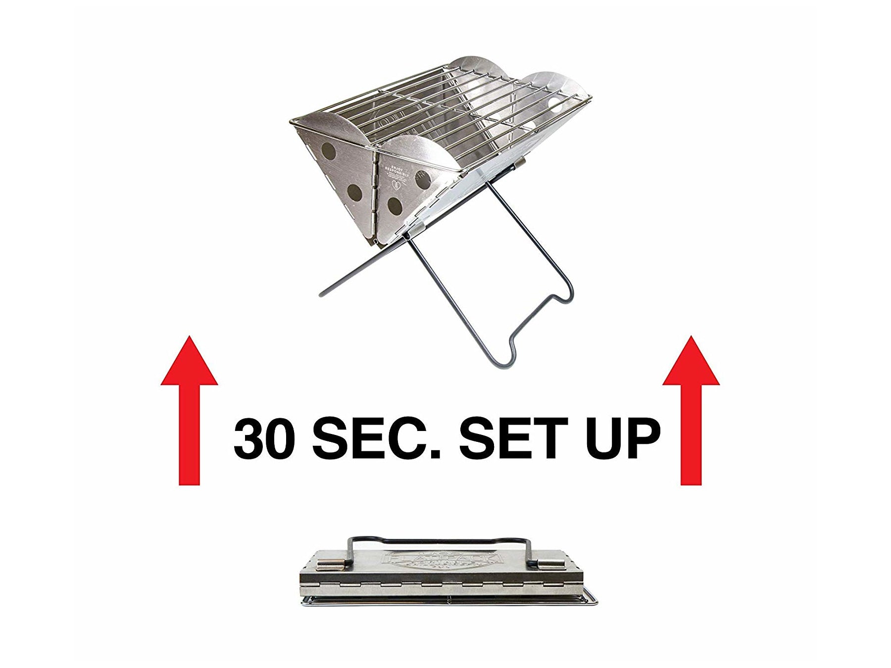 The Flatpack portable grill & firepit packs compact for easy transportation to the beach, campsite or barbeque. It's constructed of stainless steel for durability and easy maintenance. After a quick 30 second set-up, you're ready to go. All you need to do to set up this grill is unfold it and place the grates on top. It has a stable base for safe grilling and the sides serve as wind breaks for grilling in windy conditions. It can also be used as a firepit, to help you leave no trace.