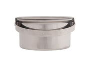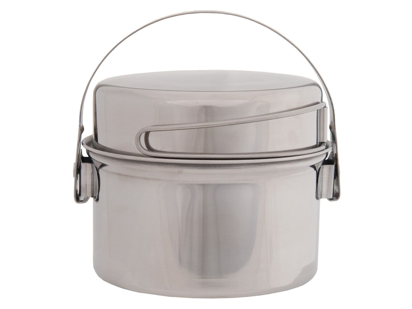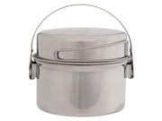 A versatile and light set of minimalist cookware. The pot lid doubles as a mini fry pan and includes its own set of flat packing handles. The handle on the pot portion has a locking bail design which secures to allow safe handling of pot contents. Made from lightweight and easy-to-clean 18/8 stainless steel giving you more time for stargazing and less time focusing on cooking and clean-up.