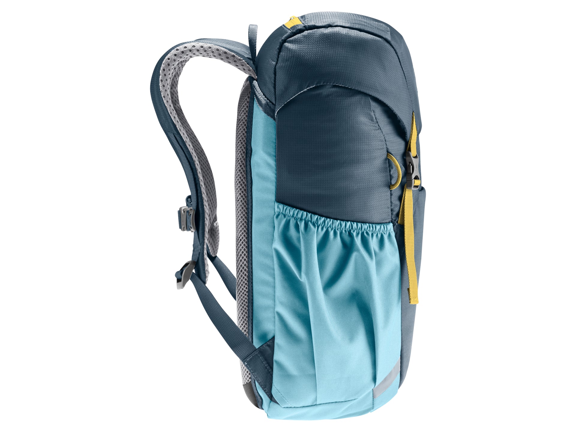 The Junior features deuter’s proven Airstripes back system for effective ventilation. The S-shaped shoulder straps with Soft-Edge finish make it comfortable to carry and the sternum strap keeps the pack securely in place, even when running hard. In addition to a spacious main compartment, it has a stretch stash pocket on the front and stretch side pockets for a whole host of items. The extra-tough, PFC-free recycled fabric (using 13 x 0.5-liter PET bottles for each pack) makes this Green Button-certified, bluesign® product a practical companion for all their explorations in the natural world.