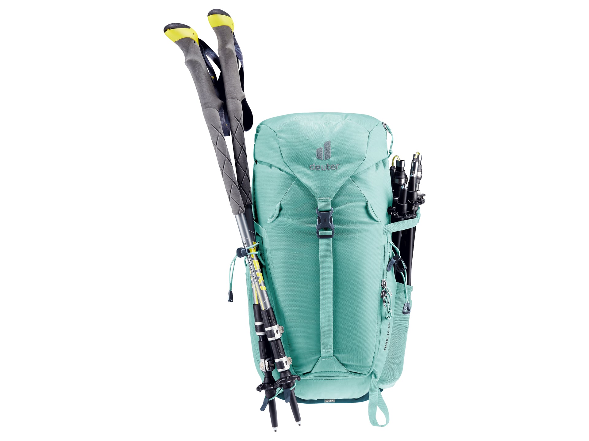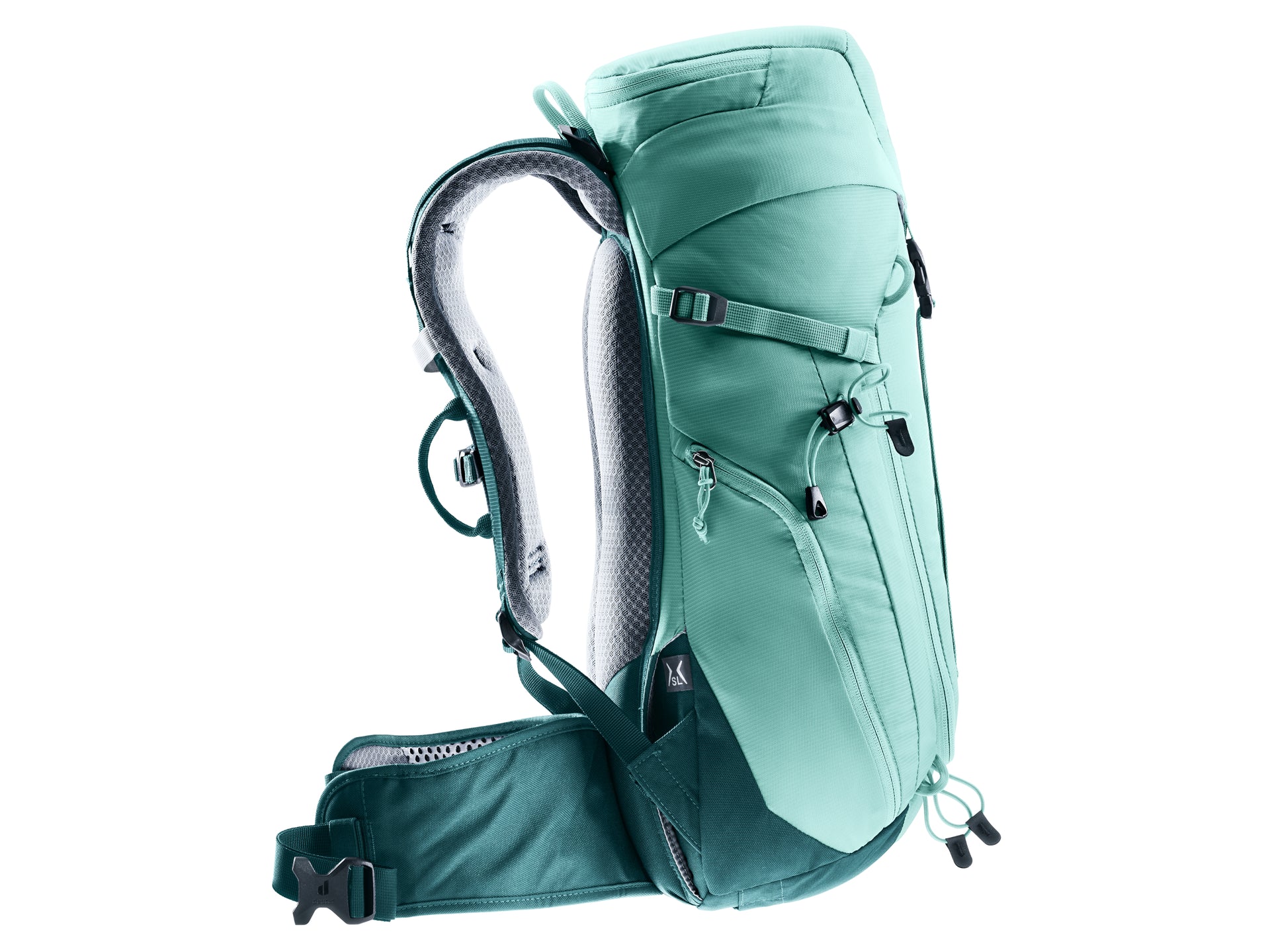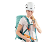 The reduced contact surface and large ventilation channels of the Deuter Airstripes back system combined with perforated shoulder straps and hip fins ensure maximum airflow and even weight distribution – for a snug, secure fit over any terrain. The flat-format lid allows space for the head to move, even with a helmet on. Loops on the shoulder straps keep via ferrata set carabiners close at hand. And thanks to a large front zipper opening and side pockets, equipment and gear are always easy to access.