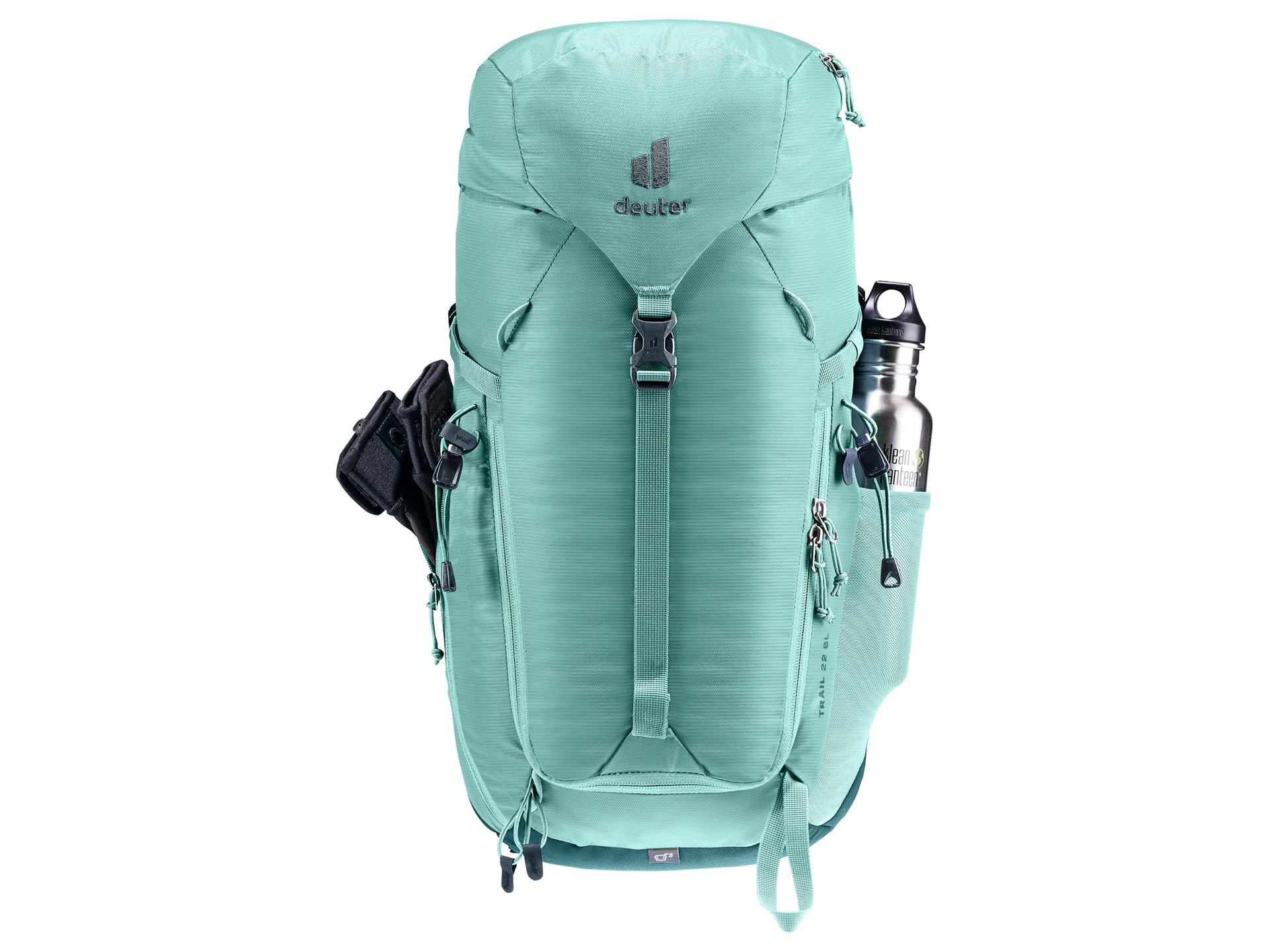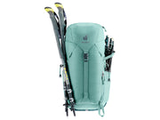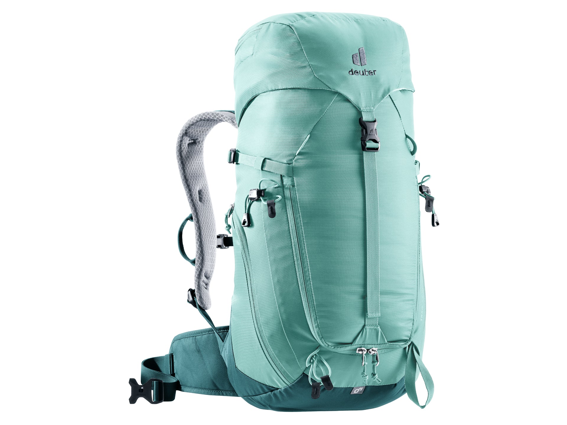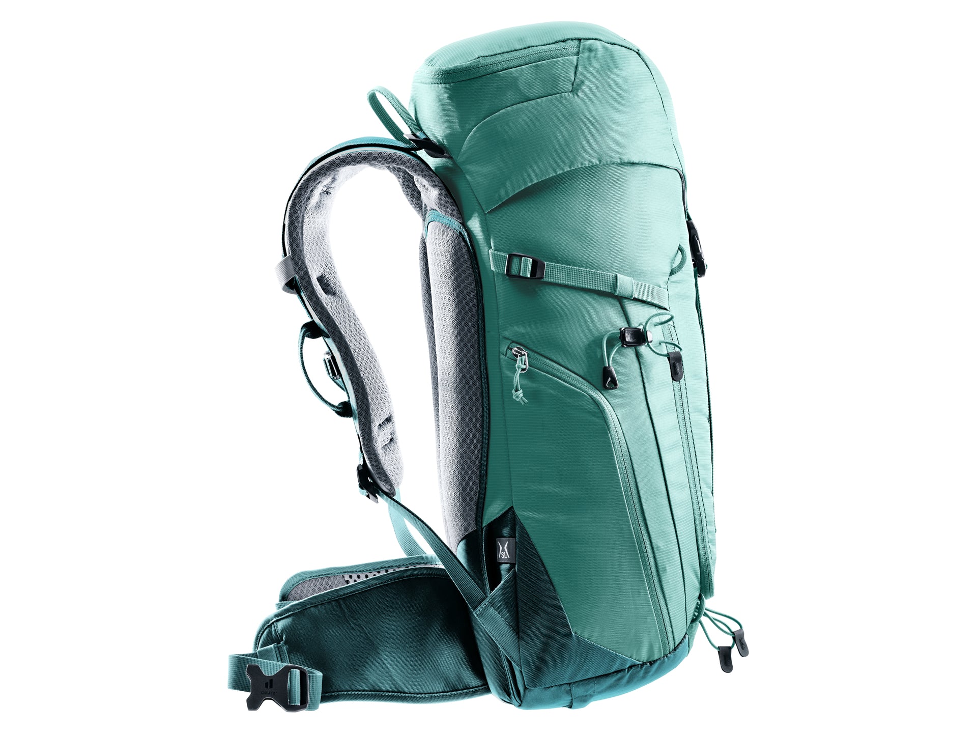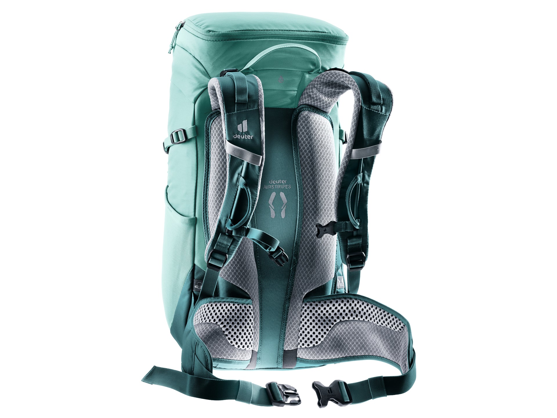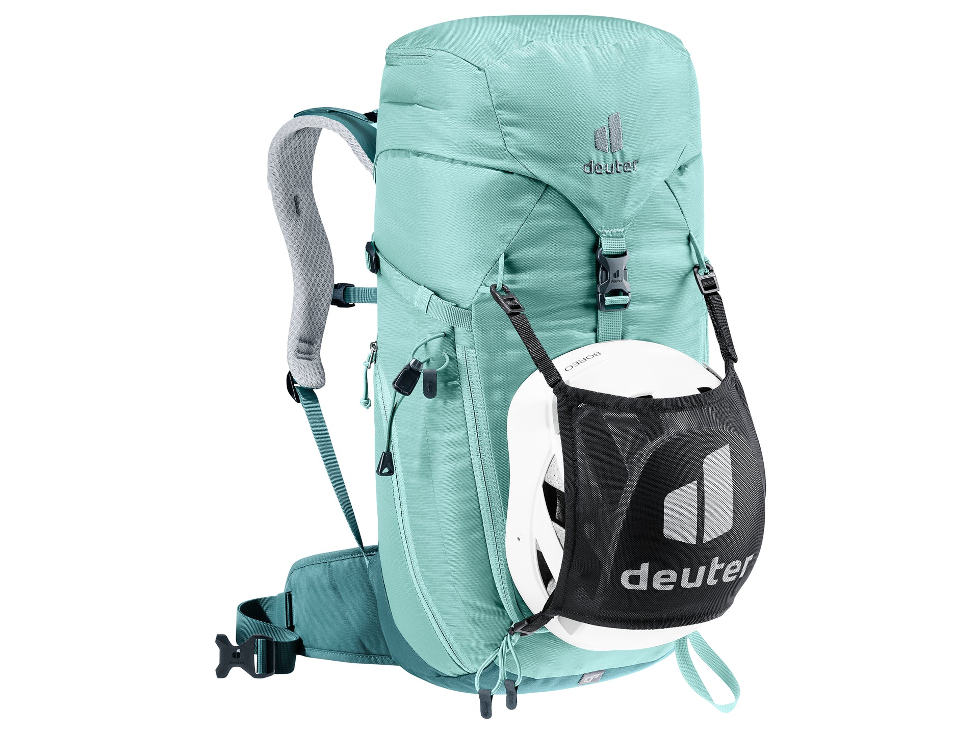 The reduced contact surface and large ventilation channels of the Deuter Airstripes back system combined with perforated shoulder straps and hip fins ensure maximum airflow and even weight distribution – for a snug, secure fit over any terrain. The flat-format lid allows space for the head to move, even with a helmet on. Loops on the shoulder straps keep via ferrata set carabiners close at hand. And thanks to a large front zipper opening and side pockets, equipment and gear are always easy to access.