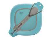 - The 4 Piece Kit Includes: 1 bowl/container, 1 lid/plate, 1 spork, and 1 reusable tether.