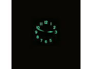 • The hands and markers are treated with high performance Swiss Super Luminous material that will intensely glow for hours based on exposure to sunlight or indoor lighting... not requiring a button push (a weak point), and will not deplete battery or require two hand operation.