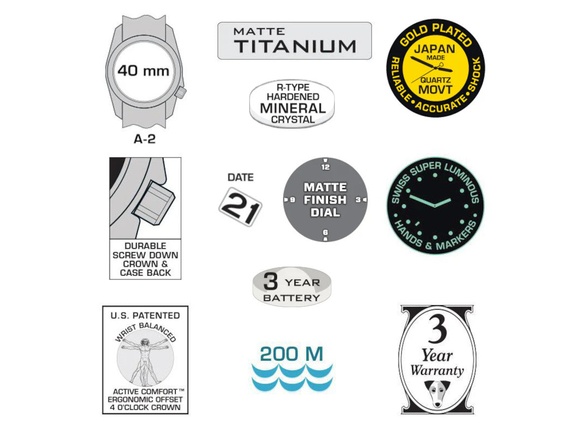 Introduced in 2004, the A-2T Original Classic™ was an immediate success… striking the perfect balance between tradition and innovation, making it the industry leading field watch. The rugged U.S. Patented Unibody™ 40 mm case is made from titanium… a high performance alloy we believe to be the best material for a field watch as it provides lightweight comfort, unmatched durability & corrosion resistance. A watch that is ready for the rigors of the day… whatever they be.