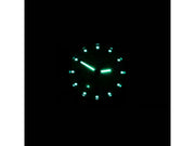 - The hands and markers are treated with high performance Swiss Super Luminous material that will intensely glow for hours based on exposure to sunlight or indoor lighting... not requiring a button push (a weak point), and will not deplete battery or require two hand operation.