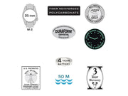 - Active Comfort™ ergonomic 4 o’clock crown does not impinge wrist movement