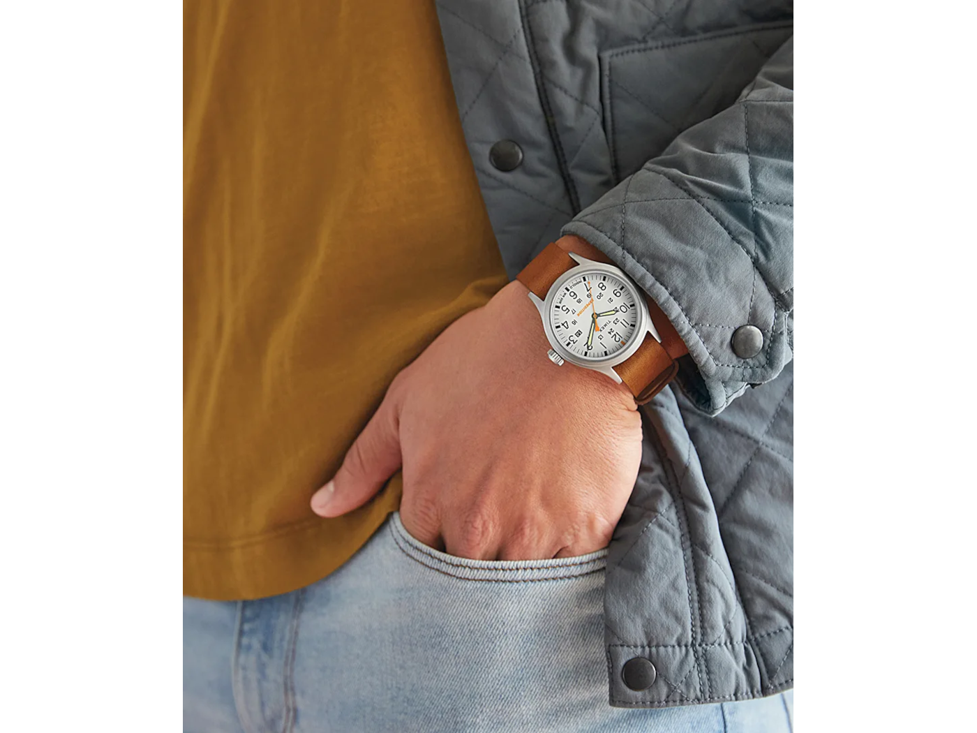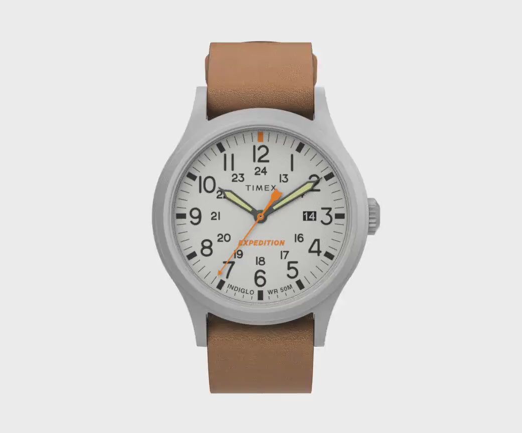 Timex Expedition® watches have been an outdoor-adventure mainstay for years now, and this update brings fresh appeal to a trail-ready classic. Featuring our much-loved INDIGLO® backlight and luminescent hands on the military-inspired dial, it’s as easy to read at midnight as it is at high noon. This sturdy watch is water resistant to 50 meters with a tan natural leather slip-thru strap and will go the distance when you take it on your next adventure — rain or shine, mountain or valley, and everything else in between.