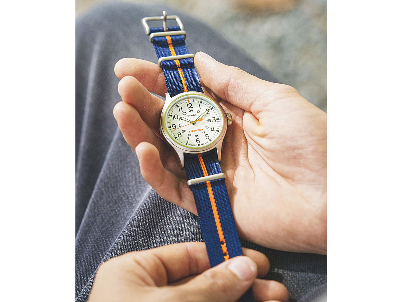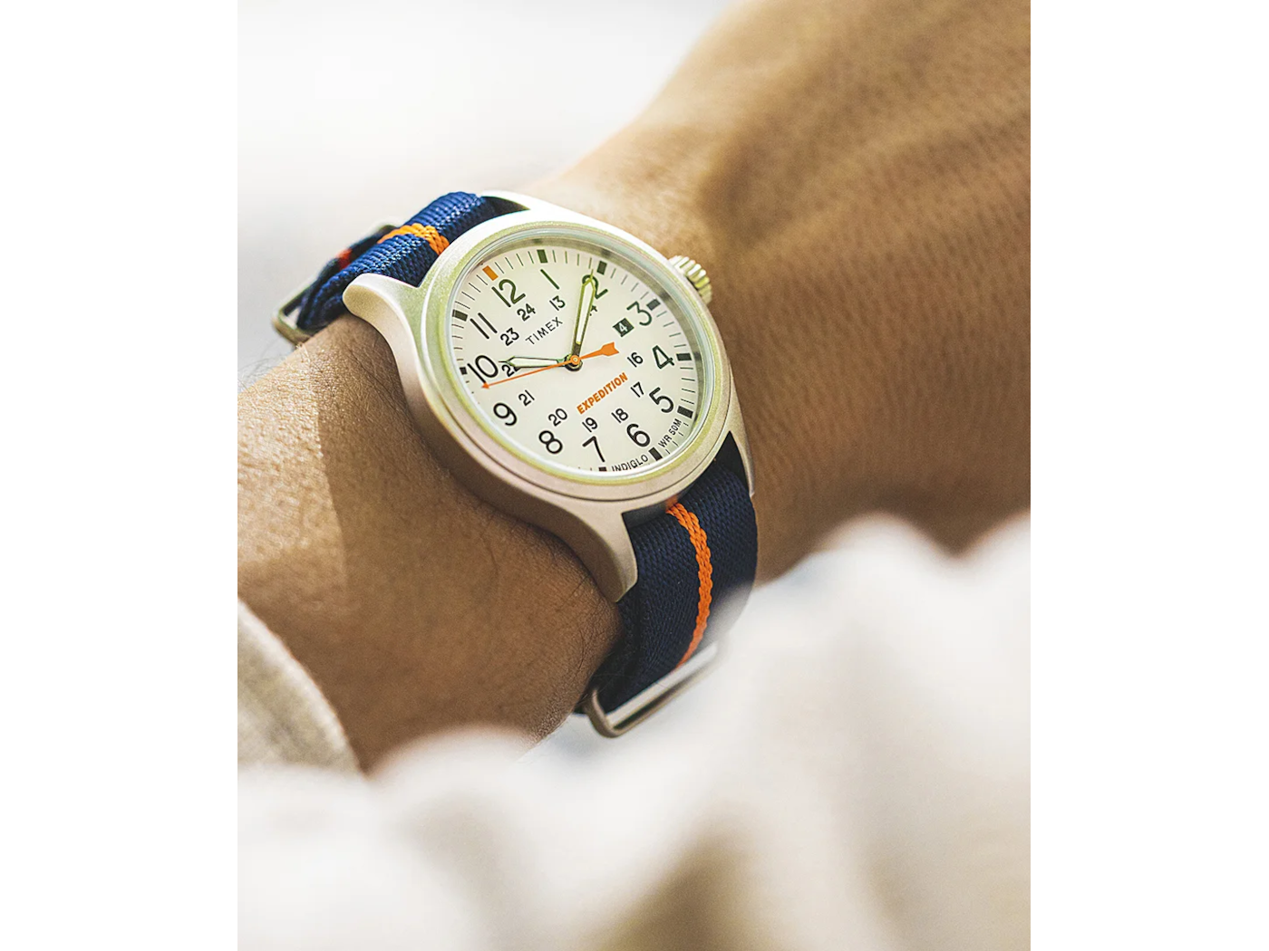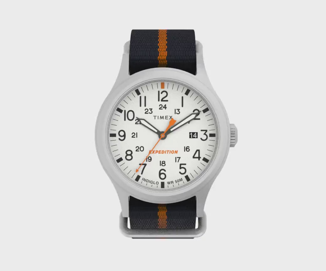 Timex Expedition® watches have been an outdoor-adventure mainstay for years now, and this update brings fresh appeal to a trail-ready classic. Featuring our much-loved INDIGLO® backlight and luminescent hands on the military-inspired dial, it’s as easy to read at midnight as it is at high noon. This sturdy watch is water resistant to 50 meters with a blue fabric slip-thru strap and will go the distance when you take it on your next adventure — rain or shine, mountain or valley, and everything else in between.