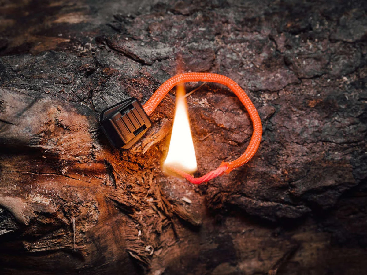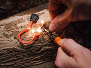 - Flammable Core - The tinderZIP™ has a red treated core that easily lights from a spark. Simply pull the core out and fluff the end with a knife before sparking.