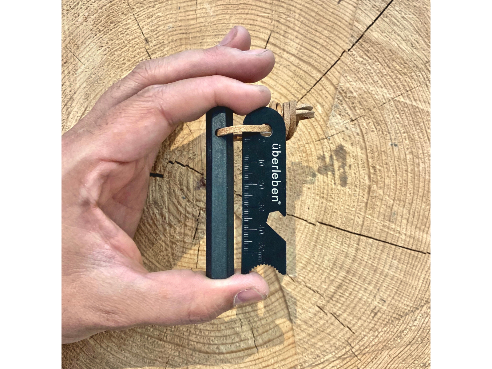 - Includes full grain leather lanyard for multiple securing options, and 6-function multi-tool scraper.