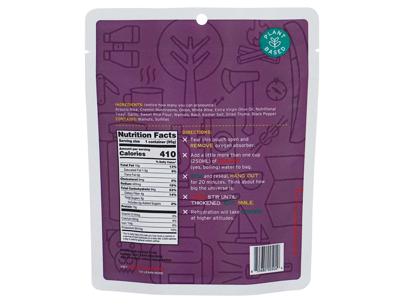 Arborio Rice, Cremini Mushrooms, Onions, White Wine, Extra Virgin Olive Oil, Nutritional Yeast, Garlic, Sweet Rice Flour, Walnuts, Basil, Kosher Salt, Thyme, Black Pepper
