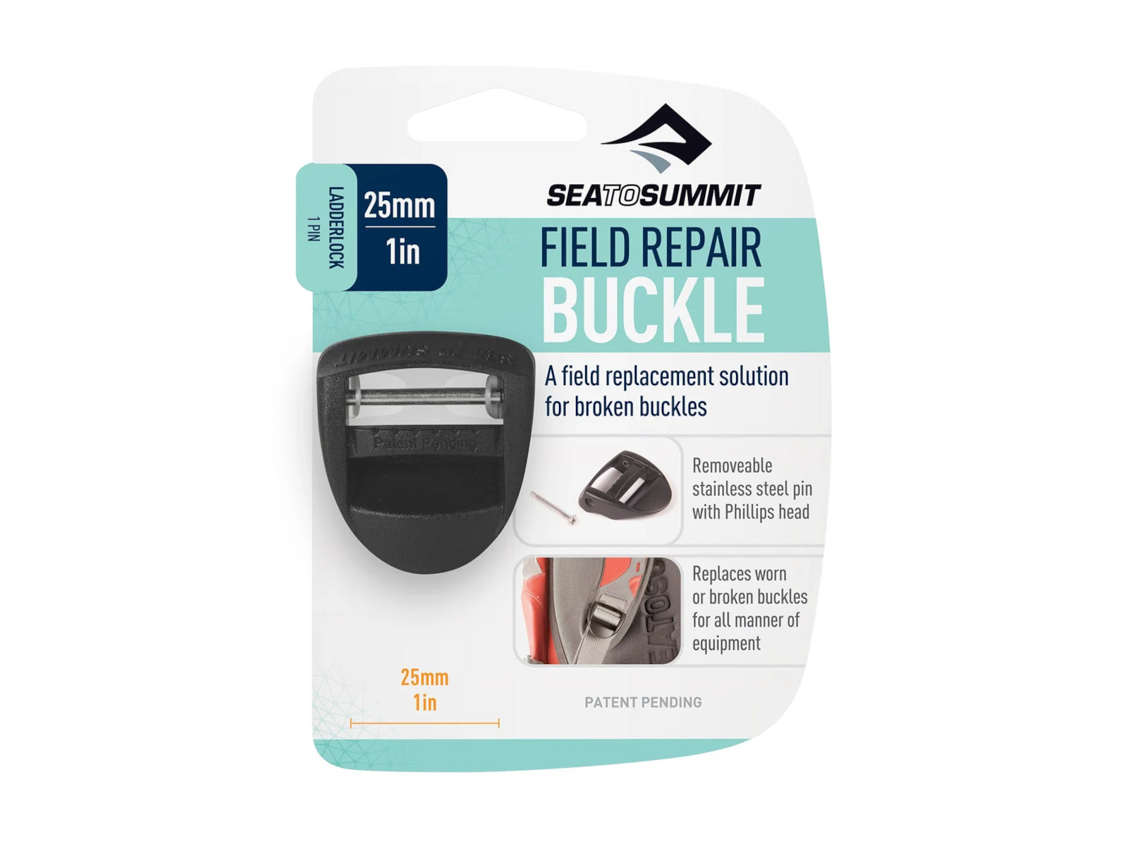 The Ladder Lock Field Repair Buckle is an easy-to-use and more permanent solution for broken or worn-out buckles. The clever design allows you to repair broken buckles, using only a screwdriver. And - because the buckles are secured by a stainless steel screw, there's no need (unlike temporary repair buckles) to replace them with sewn-on buckles on your return.