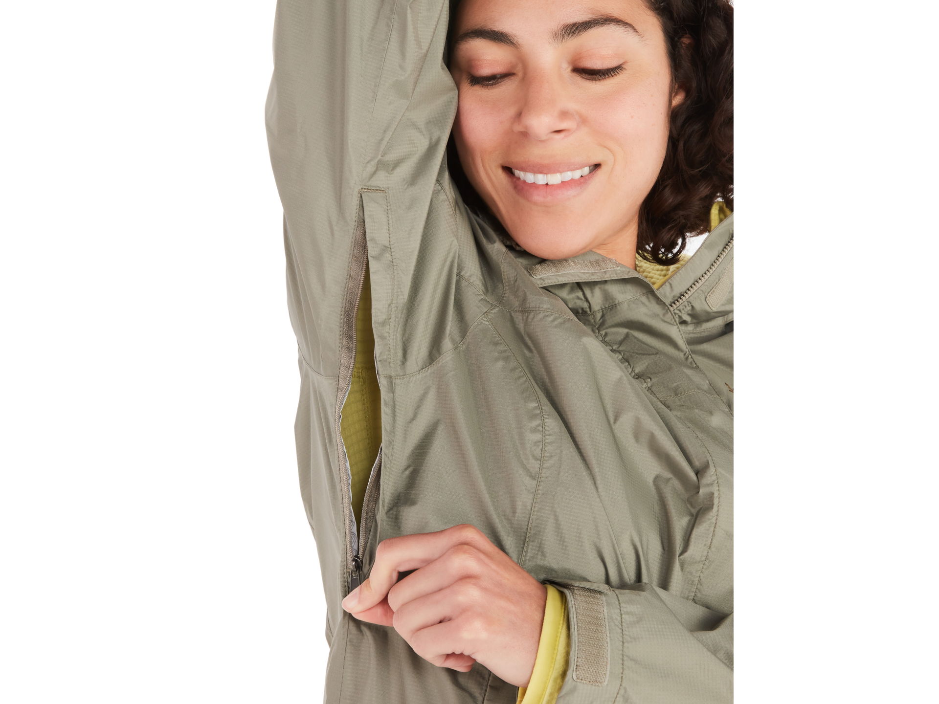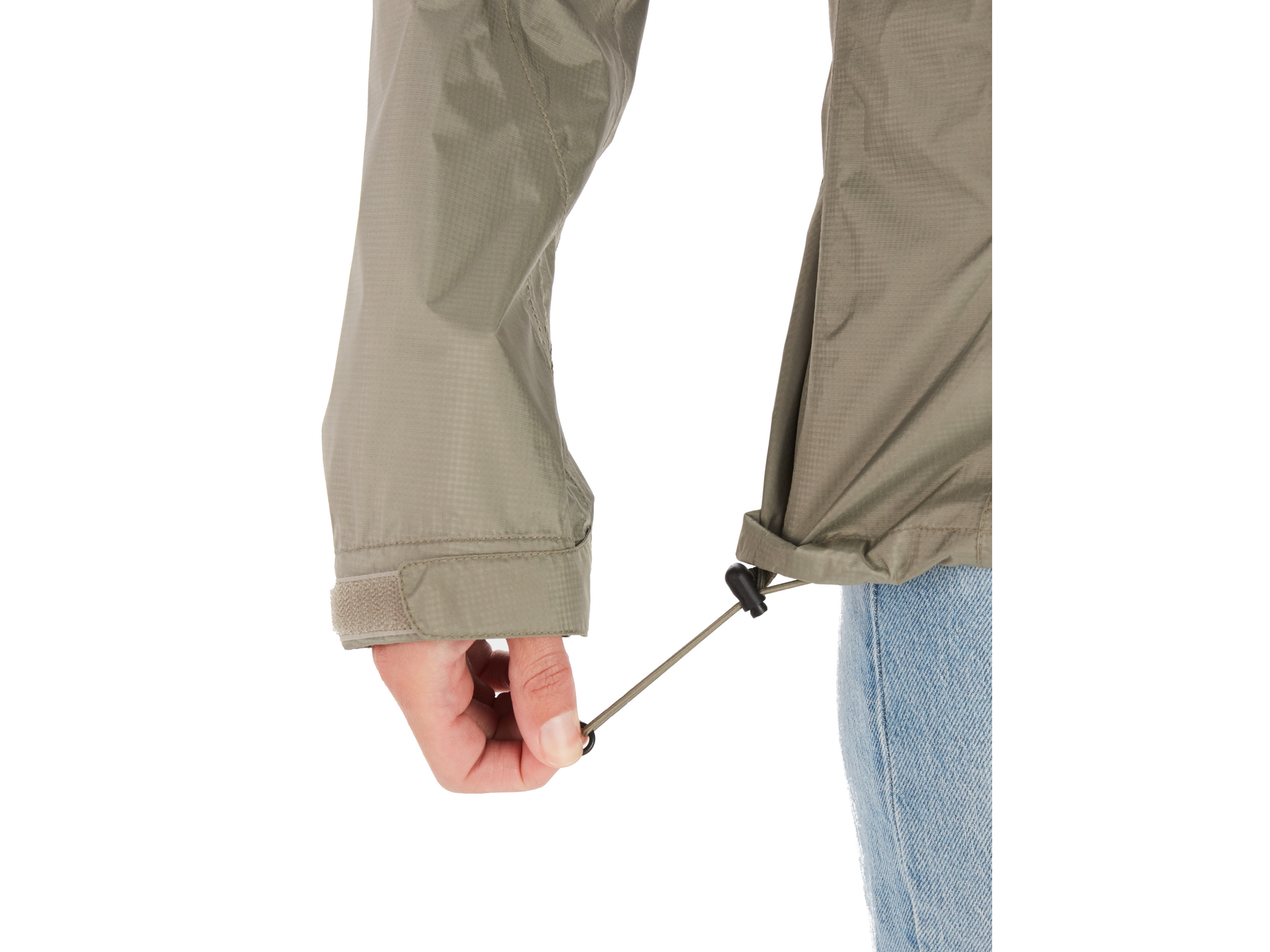 On the 20th anniversary of Marmot's best-selling PreCip® Rain Jacket, meet the environmentally conscious and high-performing next generation: the lightweight Women's PreCip® Eco Rain Jacket. The waterproof/breathable, PFC-free Marmot NanoPro™ recycled nylon face fabric lasts longer than ever, thanks to the advanced technology of our microporous coating. Sturdier, more durable than ever, and with a patented dry-touch finish, this packable water-repelling jacket that stuffs into its own pocket will become an everyday piece that you can feel good in and about. It's topped off with an updated fit and the same fully functional features you love, like a stowable hood, adjustable hem, and heat-releasing PitZips. The DriClime™-lined chin guard wicks away moisture to help prevent chafing.