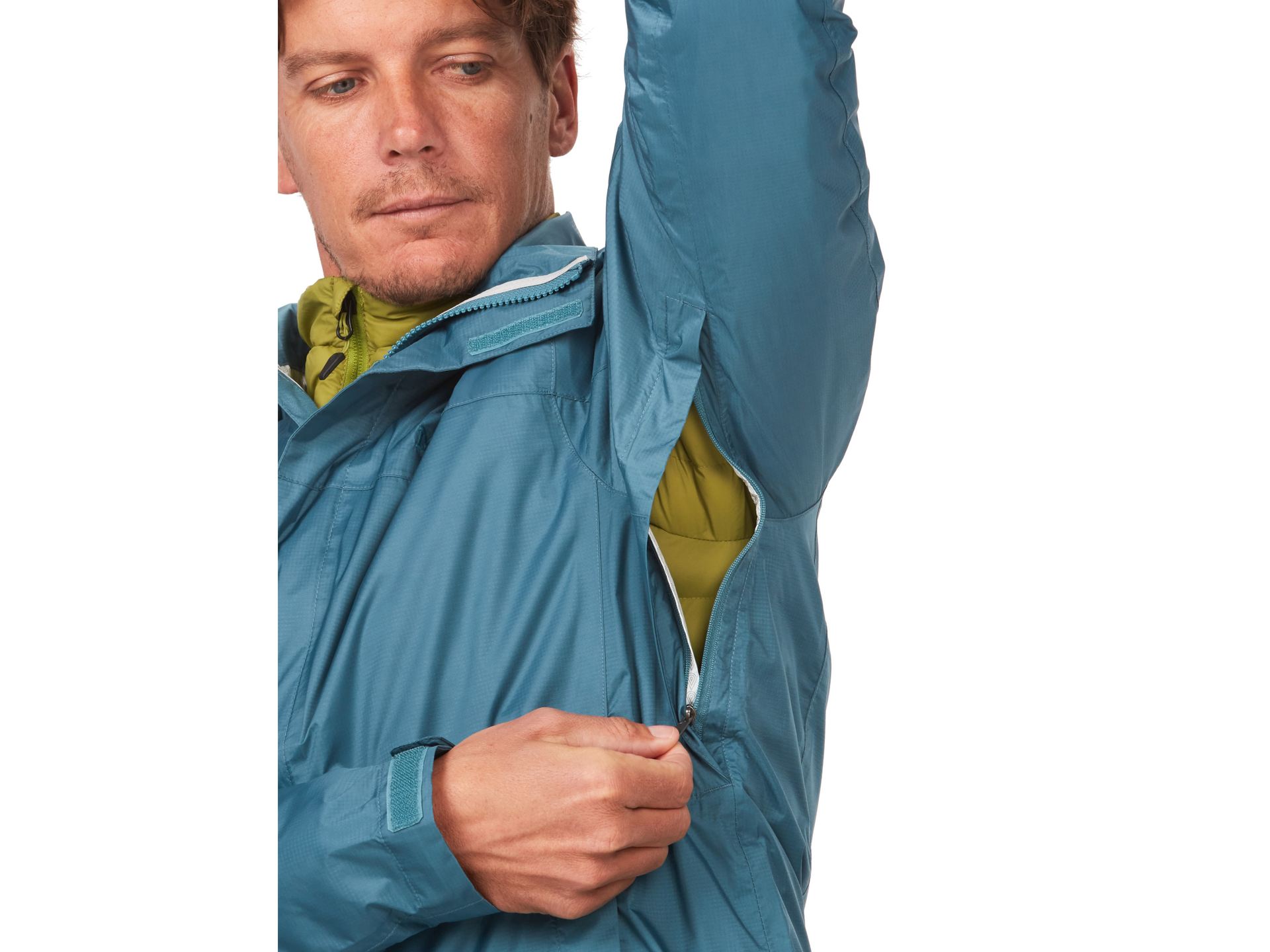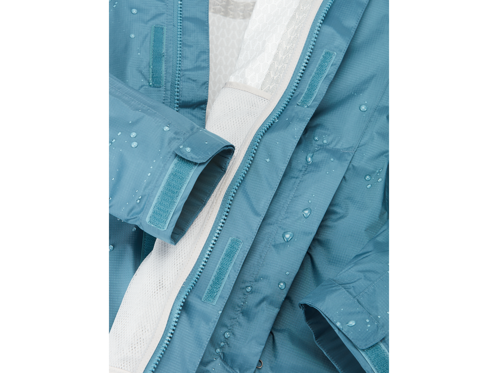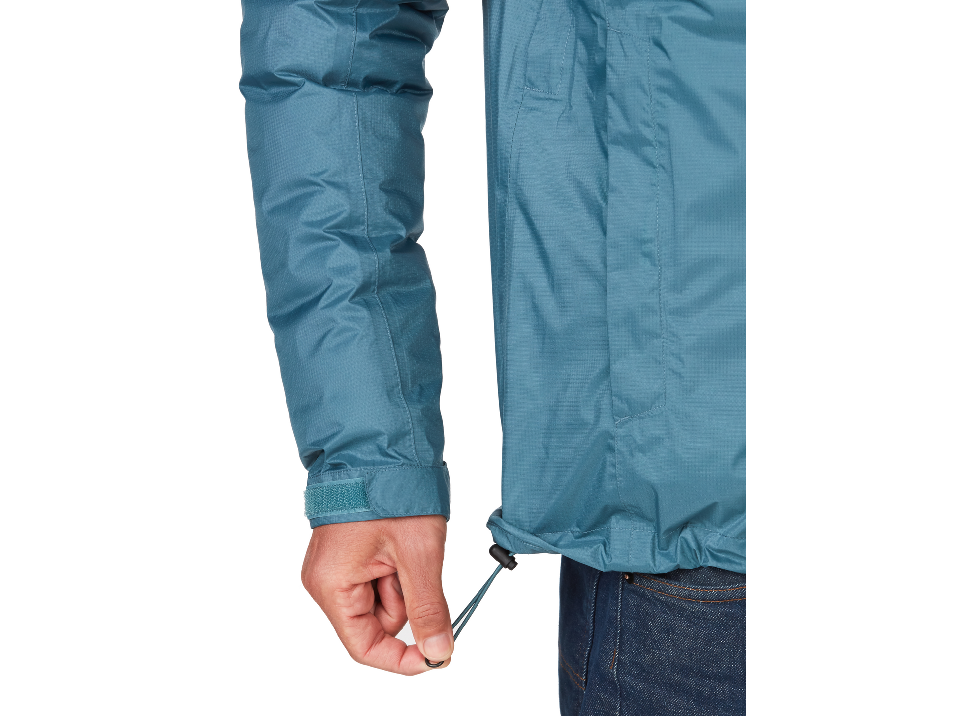 The 20th anniversary of Marmot's best-selling PreCip® Rain Jacket, meet the environmentally conscious and high-performing next generation: the lightweight PreCip Eco Rain Jacket. The waterproof/breathable, PFC-free Marmot NanoPro™ recycled nylon face fabric lasts longer than ever, thanks to the advanced technology of our microporous coating. Sturdier, more durable than ever, and with a patented dry-touch finish, this packable water-repelling jacket that stuffs into its own pocket will become an everyday piece that you can feel good in and about. It's topped off with an updated fit and the same fully functional features you love, like a stowable hood, adjustable hem, and heat-releasing PitZips. The DriClime™-lined chin guard wicks away moisture to help prevent chafing.