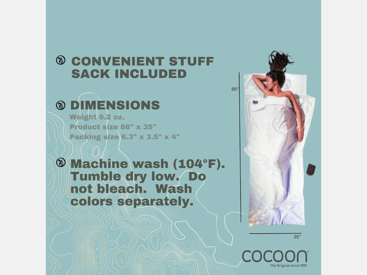 Pima cotton is a rare and long-fibered cotton that is spun into a fine yarn, making it incredibly lightweight and compact. COCOON TravelSheets™ and MummyLiners™ made of Pima cotton are much lighter and more compact than regular cotton options, making them a great compromise between regular cotton and silk.