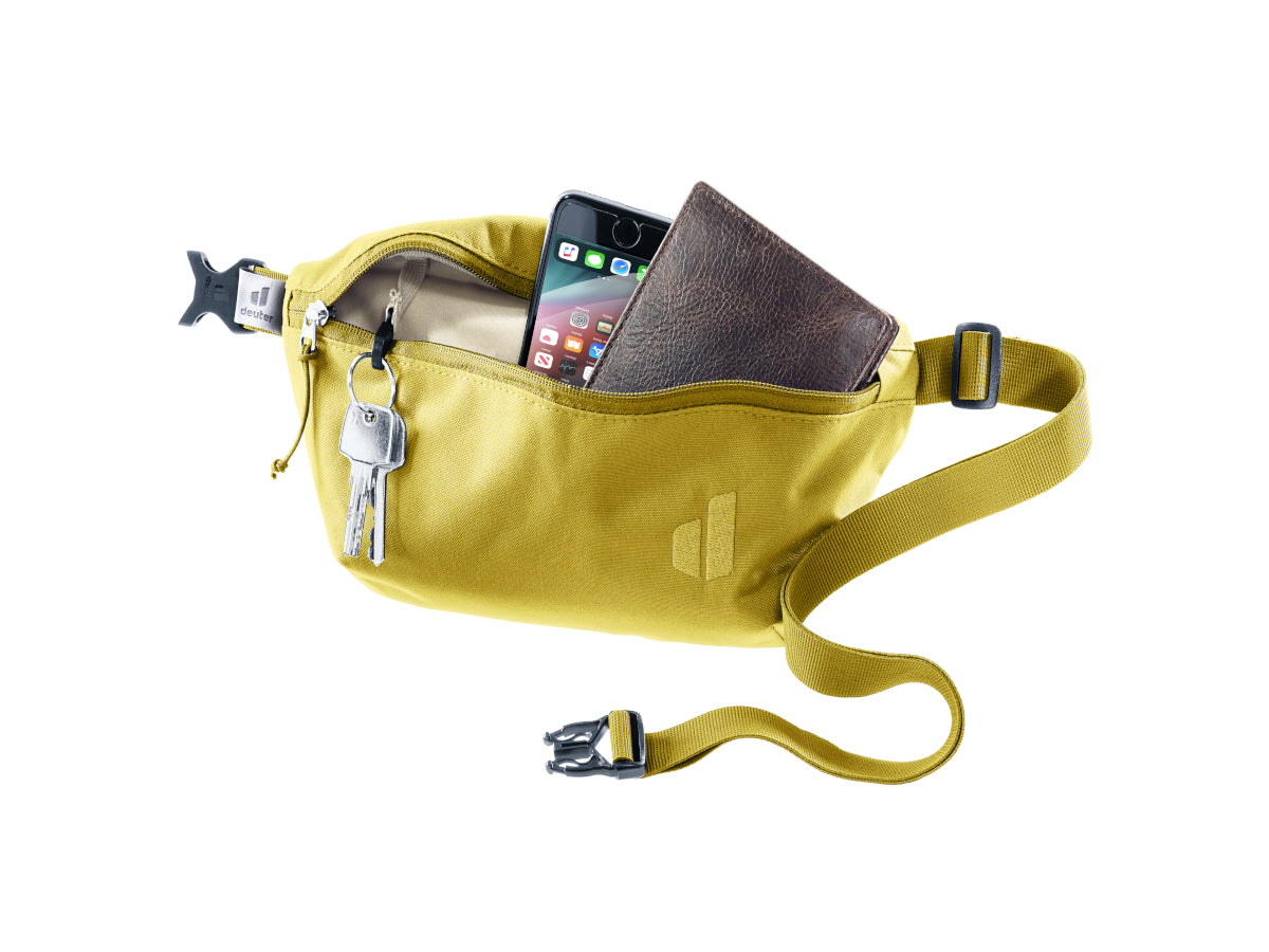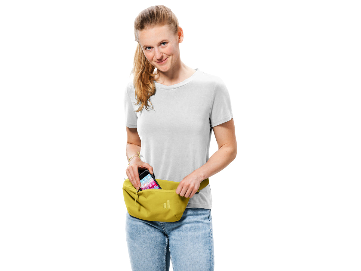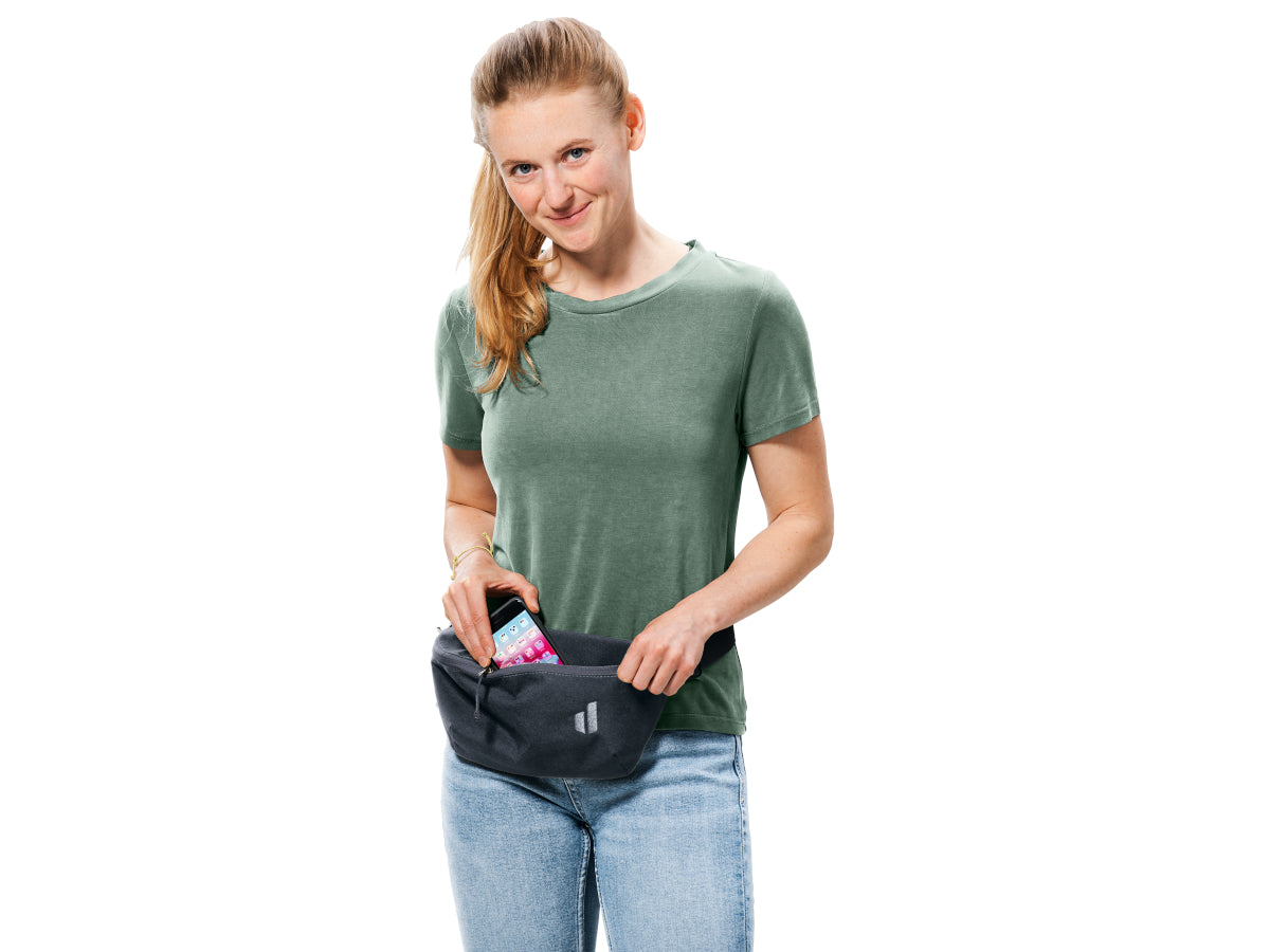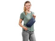 This minimalist crossbody bag uses body fabric made of 100% recycled materials with components made using environmentally friendly, resource-efficient manufacturing practices – a clear statement of our commitment to sustainability. This is a bluesign® product with Green Button certification; it’s also climate neutral and PFC free. A roomy main compartment, zippered front pocket and adjustable waist belt means that city explorers can stash their valuables and other personal belongings in a stylish way, and close to their body.