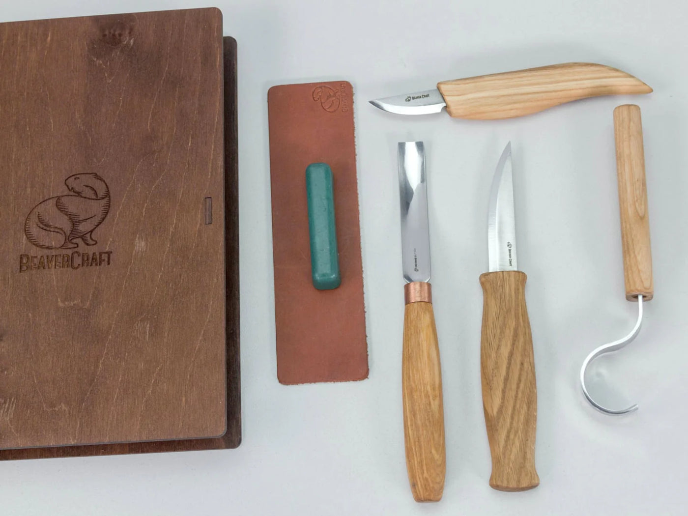 Beavercraft Spoon and Kuksa Carving Professional Set with Knives and Strop in a Book Case - S43