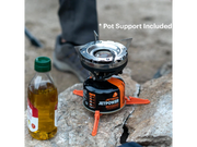 Built with backpackers in mind, the MiniMo cooking system combines Jetboil's tried-and-true efficiency and versatility with a convenient form factor. Powered by FluxRing technology, the MiniMo reaches a rolling boil in just over two minutes with half the fuel consumption of traditional systems. Jetboil's proprietary regulator technology offers incremental heat adjustments from light simmer to full boil, perfect for sautéing greens, simmering sauces, and more. Metal handles and a FluxRing cooking cup—optimized for a low spoon angle—make the MiniMo the perfect vessel for personal cooking and eating. Start heating instantly with the convenient, reliable push-button igniter; save pack space with the clever sideways burner storage design. Includes fuel canister stabilizer and pot support; easy to pack and carry at only 14.6 ounces.