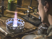 The Essential Stove System is a unique multi-person all-in-one system for the backpacking family. This system offers the most stable and windproof burner and contains the stove, 2 pots and a pan to cook for the crew.
