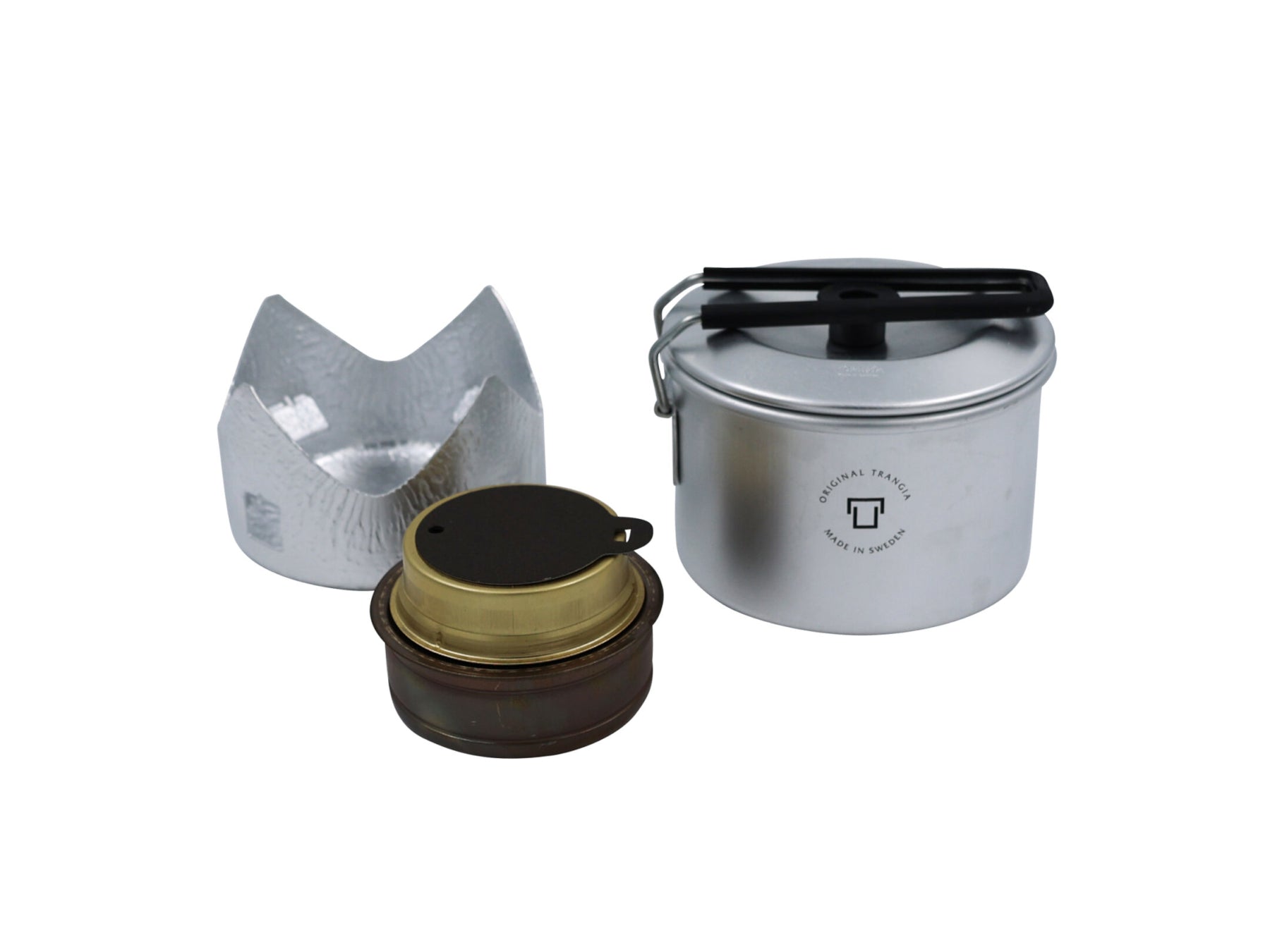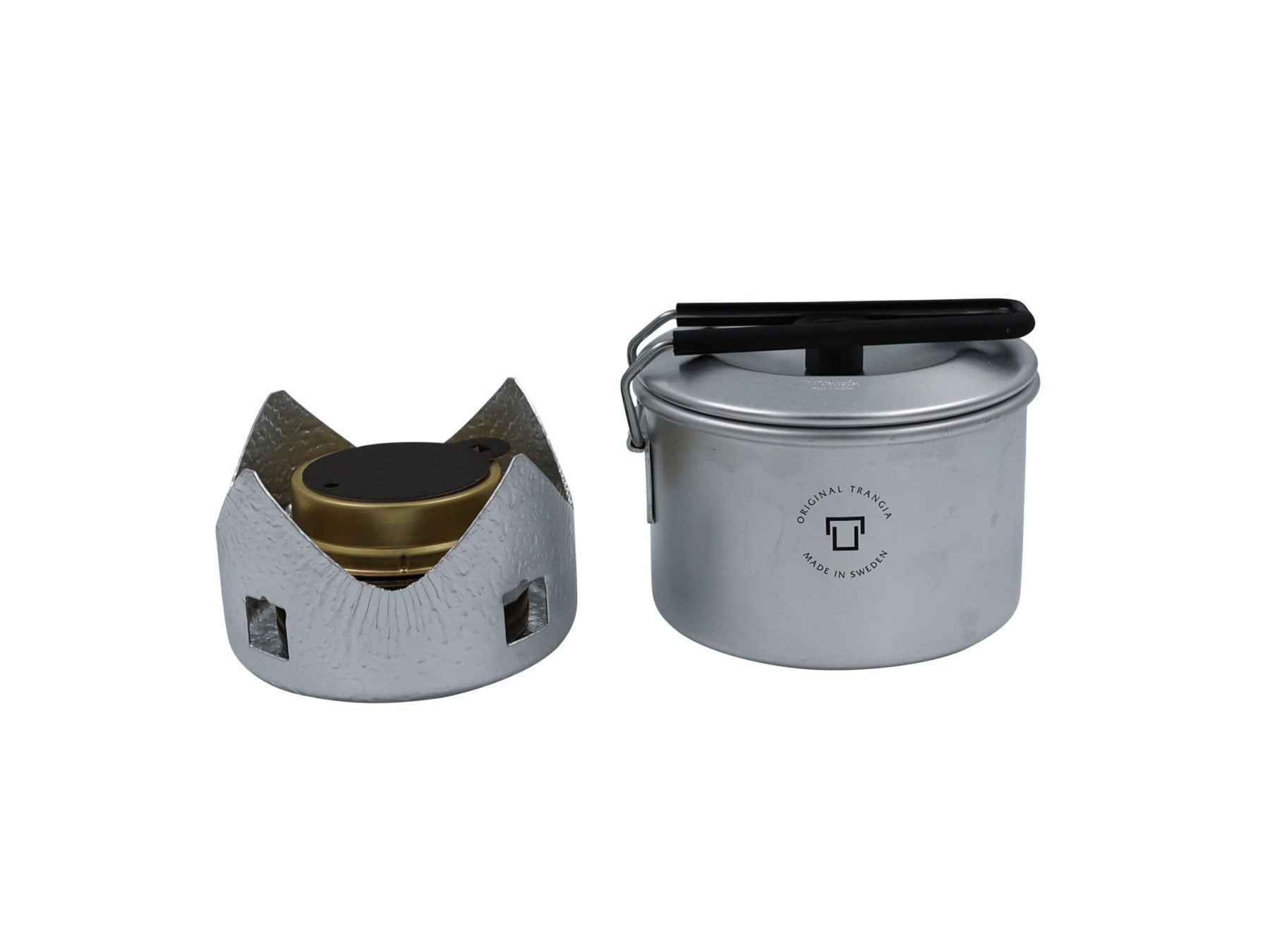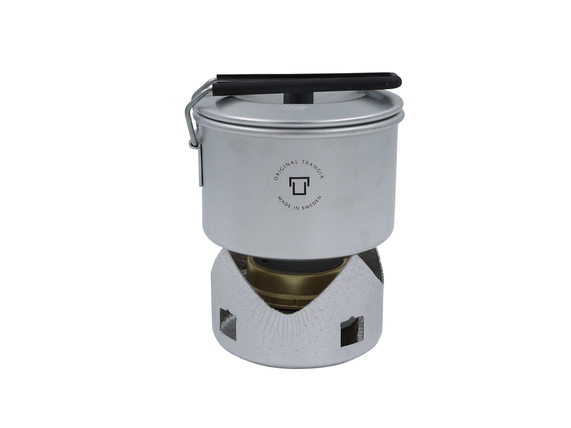 Trangia Micro Original is their smallest and most compact stove. A complete set that holds 0.5 liters and combines lightweight, functionality, and convenience. The set includes the T-Cup with a lid, foldable handle, windshield, and the trustworthy spirit burner. It is the ultimate solution for preparing a quick lunch to share with a friend or for the solo adventurer. Packed up, all parts nests in the T-Cup and the handle snaps smoothly over the lid. Keep plastic handle away from direct flame.