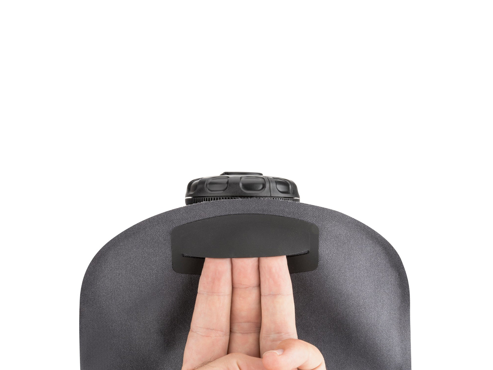 - Extra-small shower fitting attaches to webbing strap when not in use