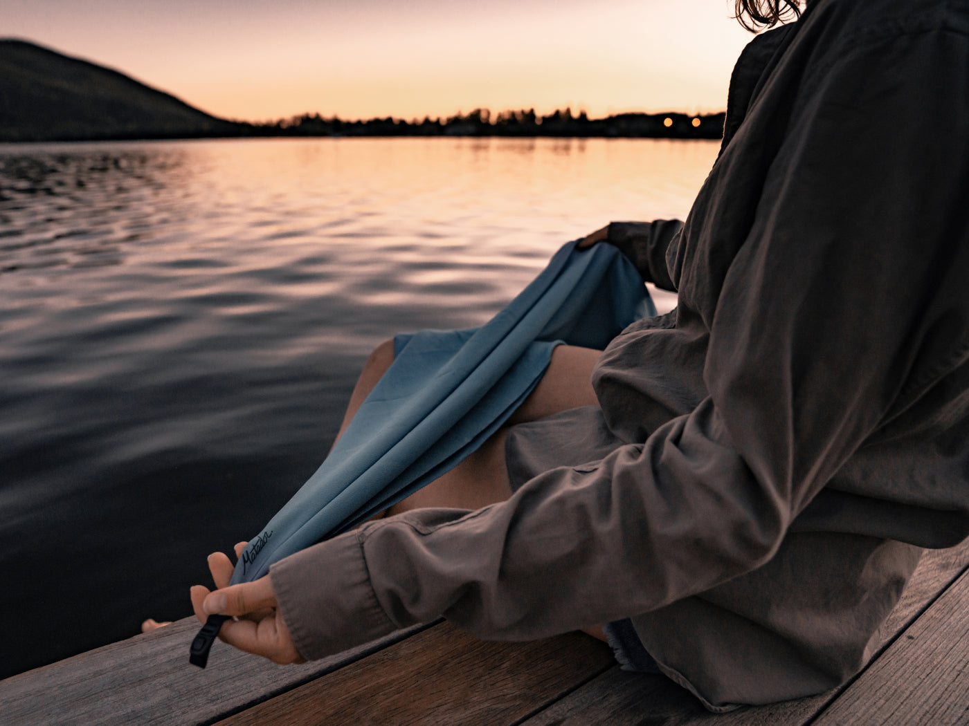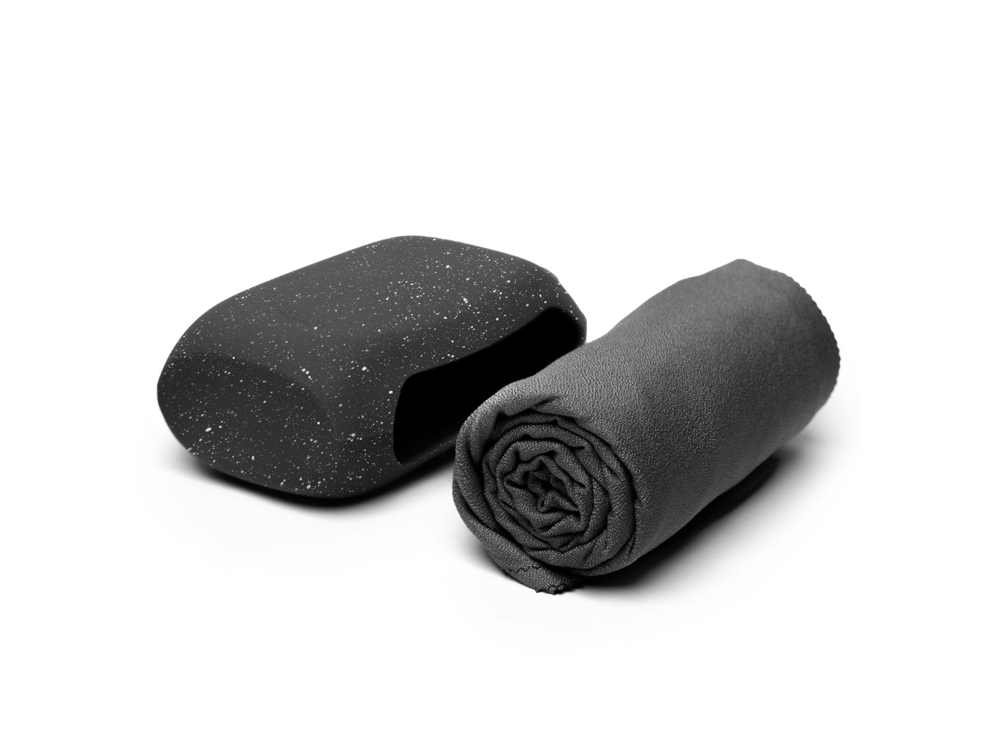 The NanoDry Shower Towel is a full-size towel made from high performance nanofiber material. It absorbs over twice its weight in water, dries quickly, and packs into a compact silicone travel case for transport.