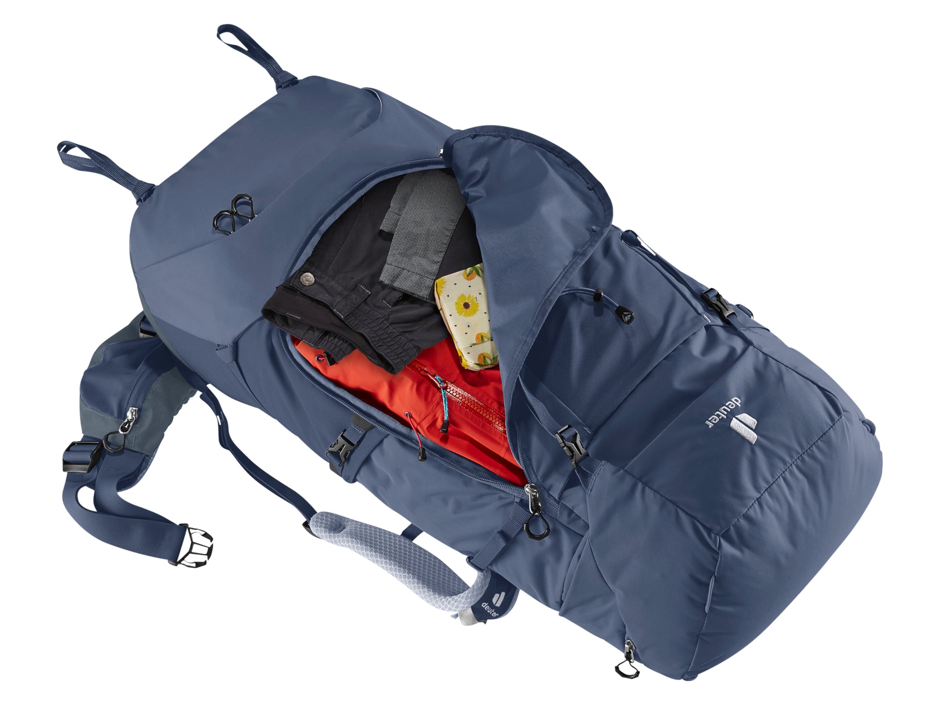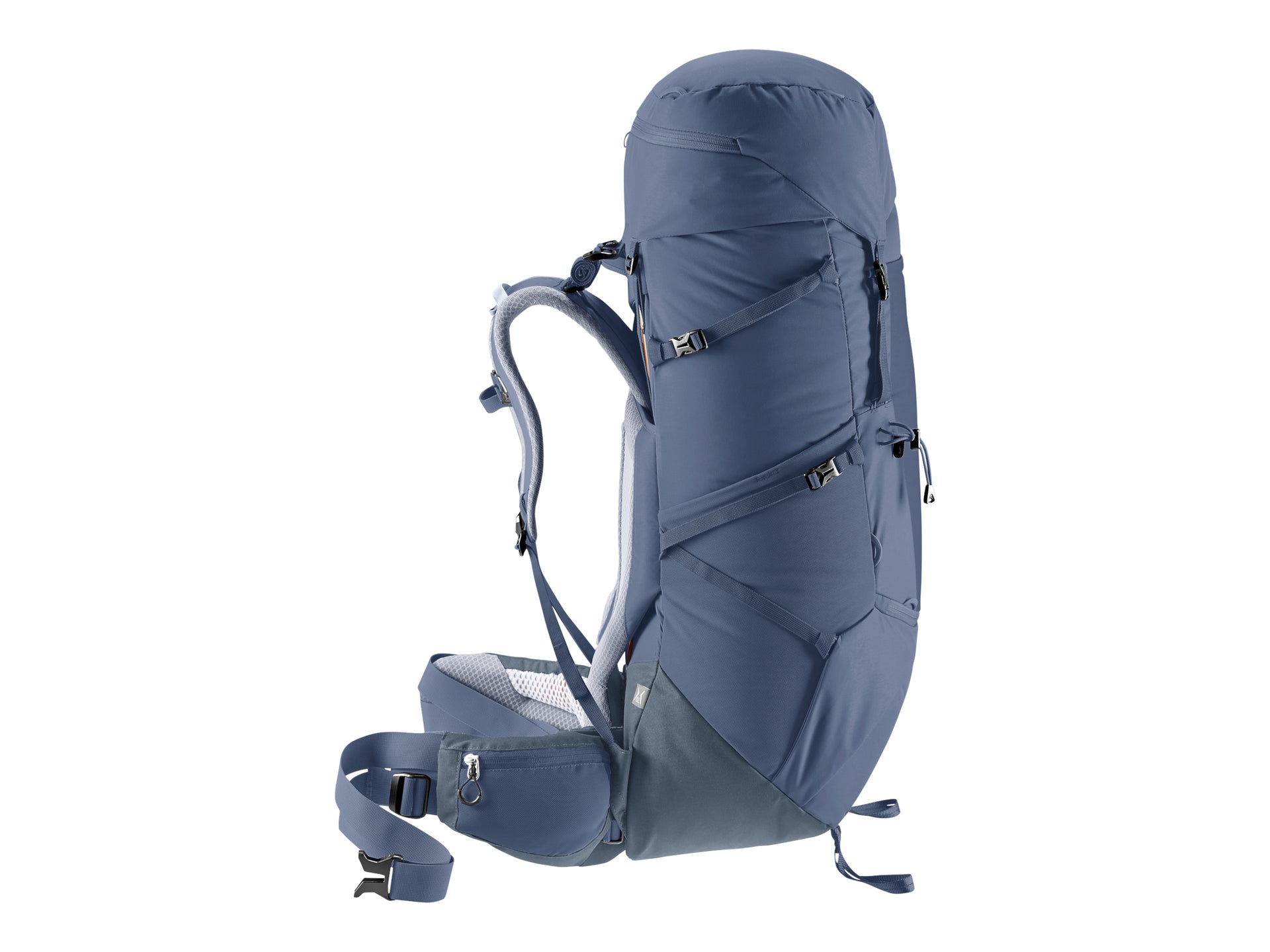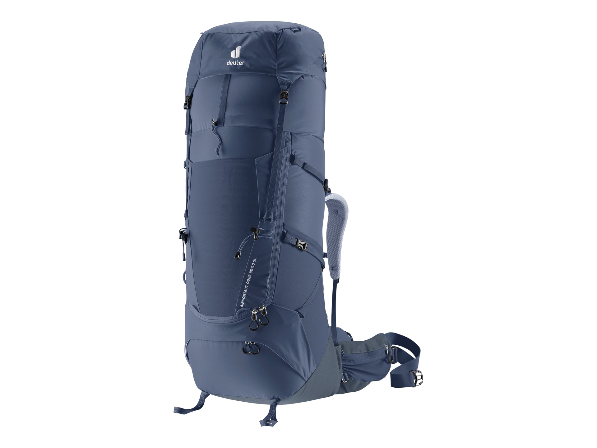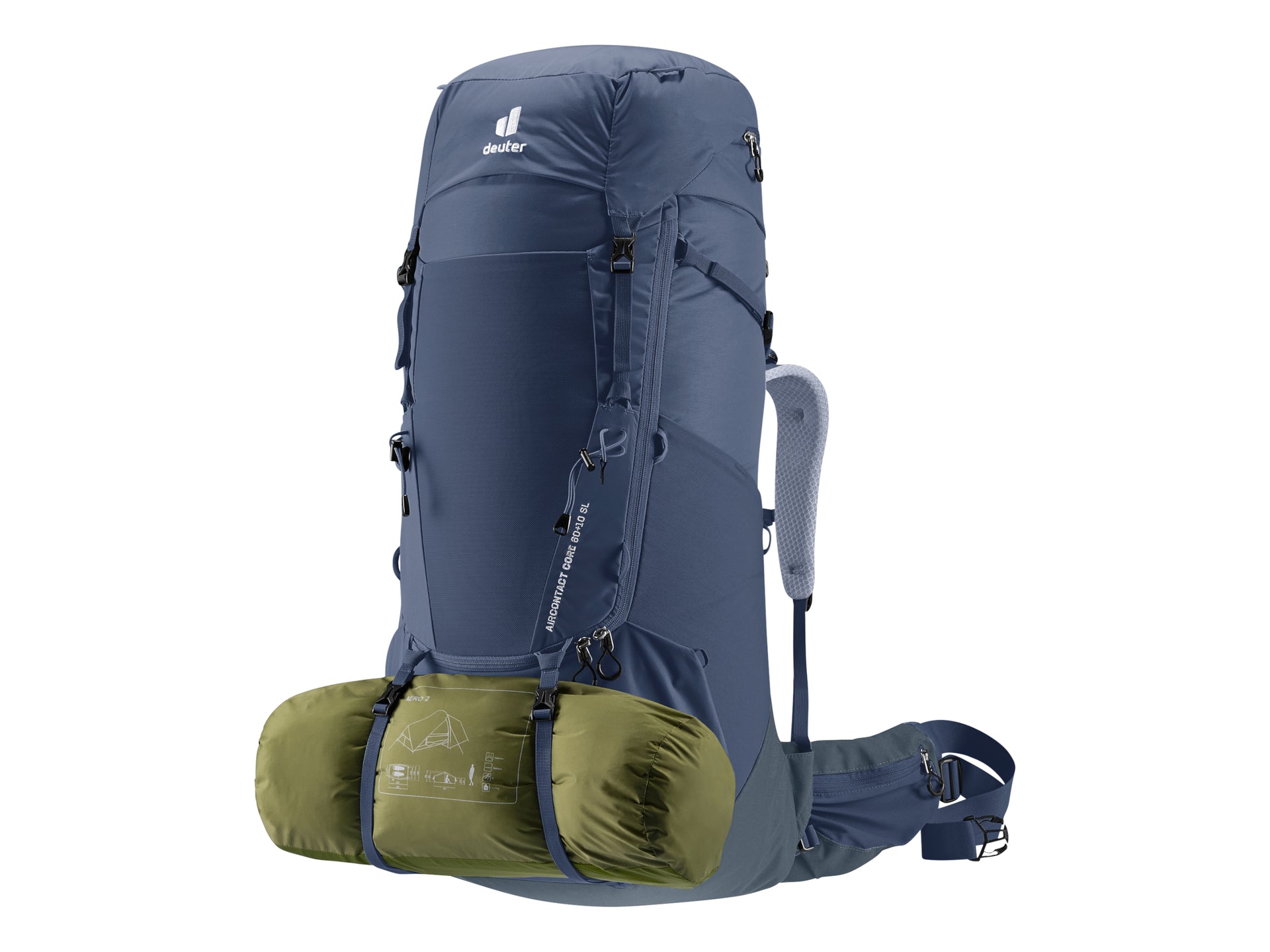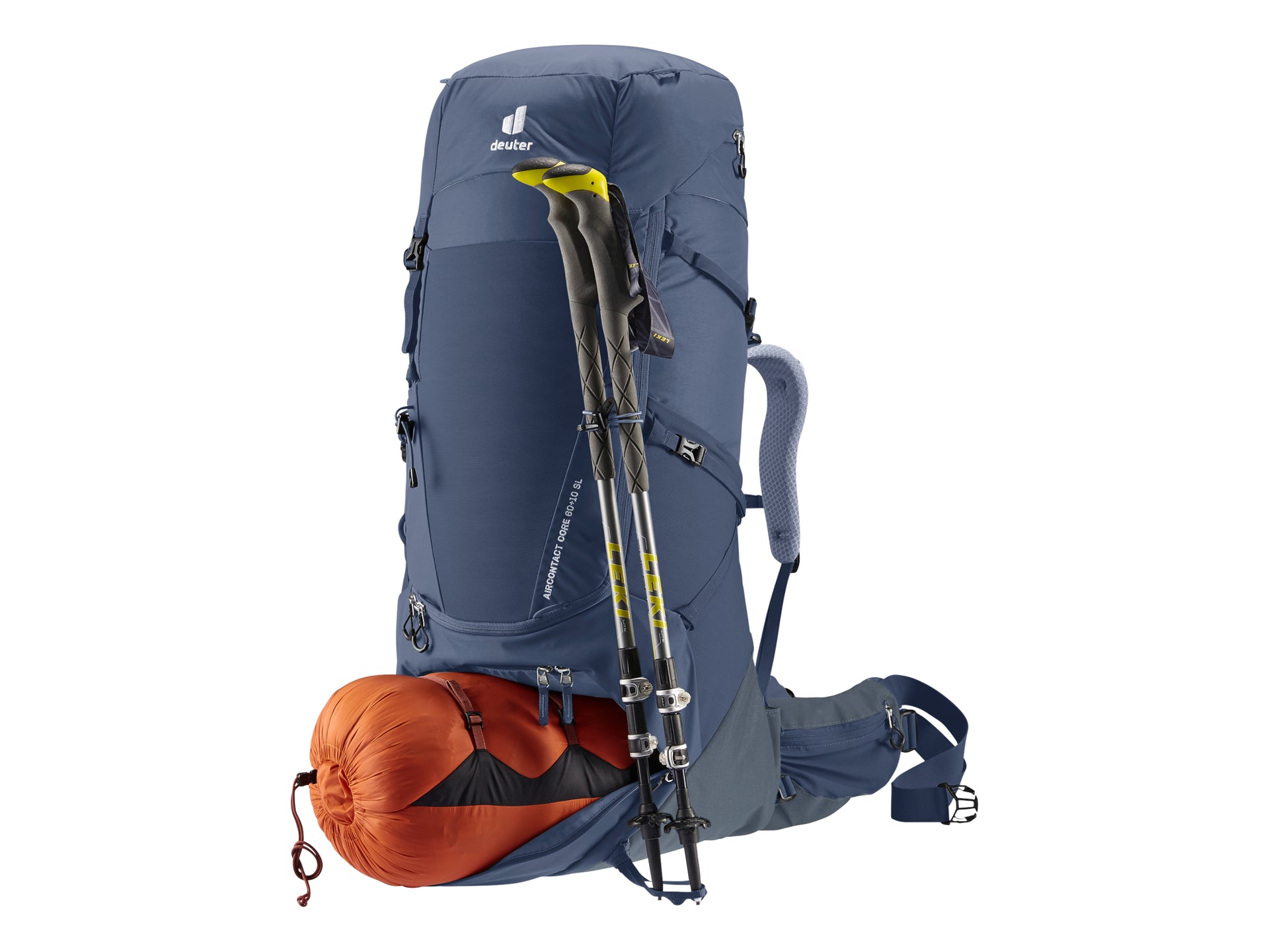 The Deuter Aircontact Core 60 + 10 SL offers outstanding comfort which can be attributed to the Deuter Aircontact back system with its Air Spacer mesh, large ventilation channel, and ergonomic ActiveFit shoulder straps and an adjustable sternum strap. The Y-shaped frame, mobile hip fins and ergonomic lumbar pad combine to distribute the load effectively. A full-length, J-shaped zipper on the front makes contents easy to locate lower down in the main compartment. While large, detachable hip fin pockets (3 L) provide extra storage and keep items within reach. A zip-out 1.5-liter bottle holster also lets you hydrate on the move.