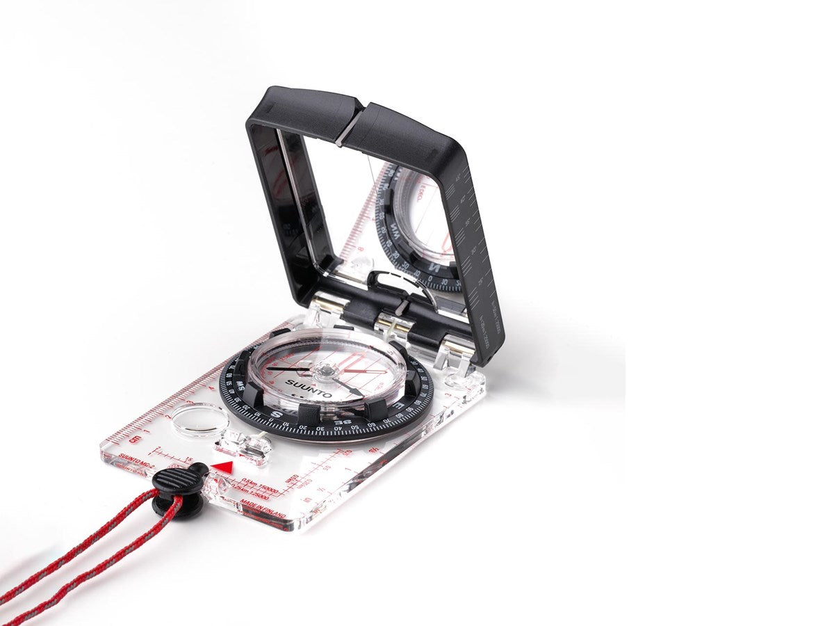 Includes: Suunto MC-2 NH Mirror Compass, lanyard with wristlock and declination correction tool, Quickrelease, Quick Guide