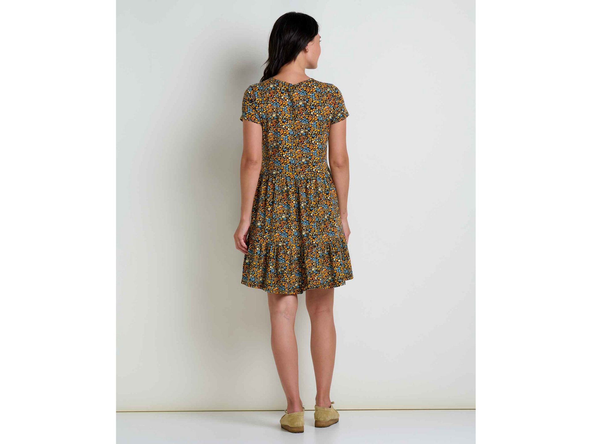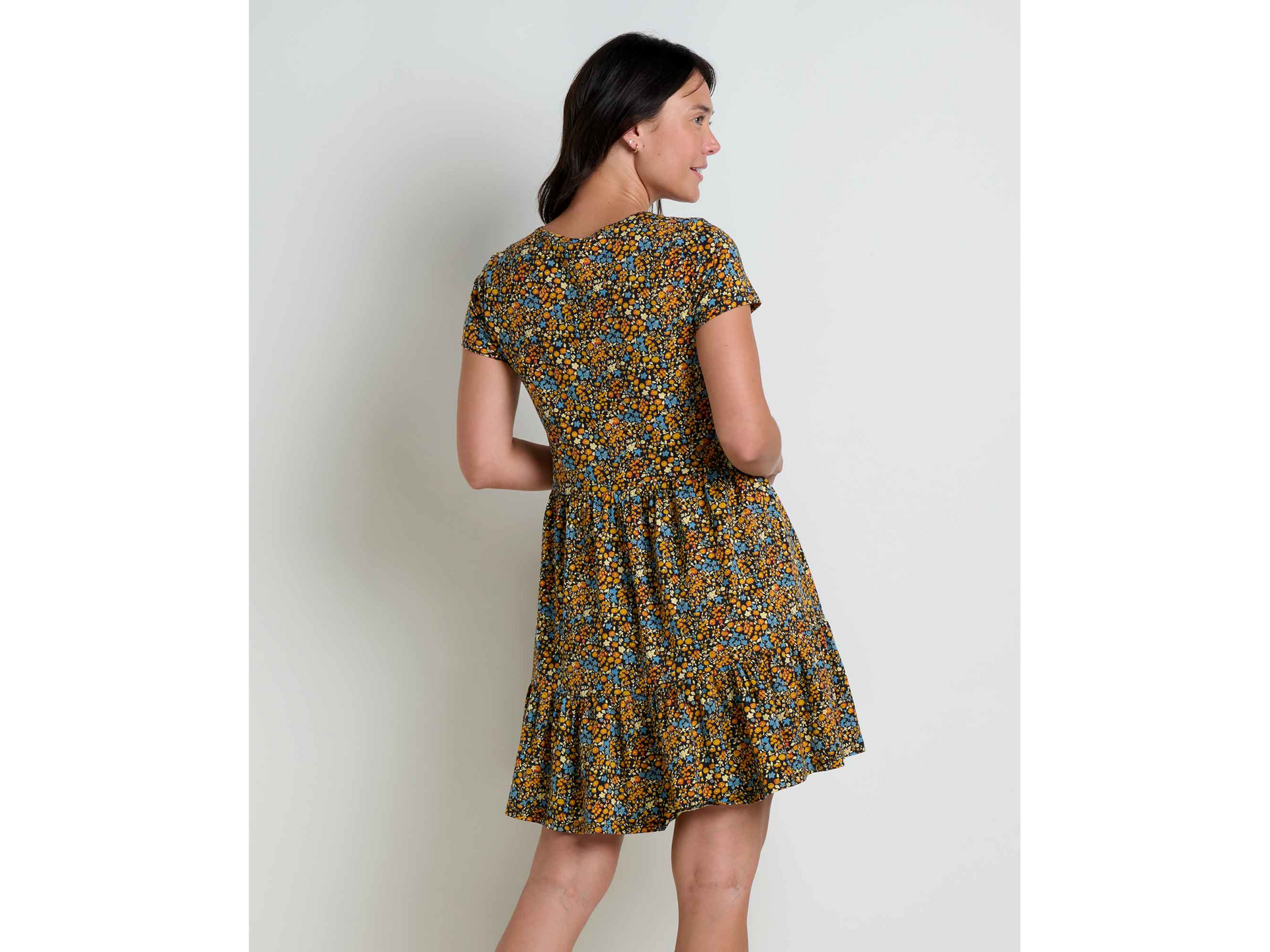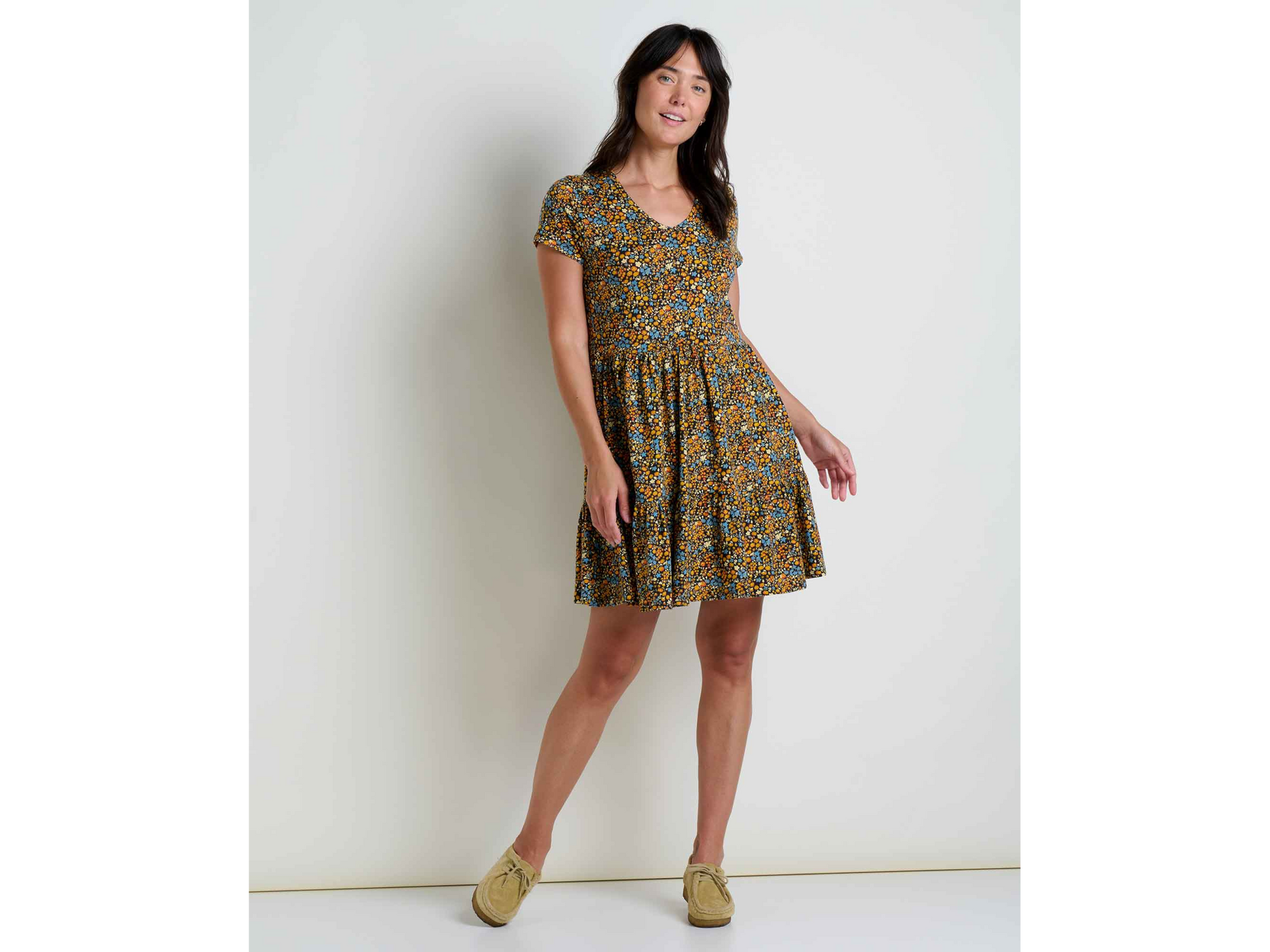 Fit: Swing silhouette, v-neck, tiered skirt, hits above the knee, 35 inch length