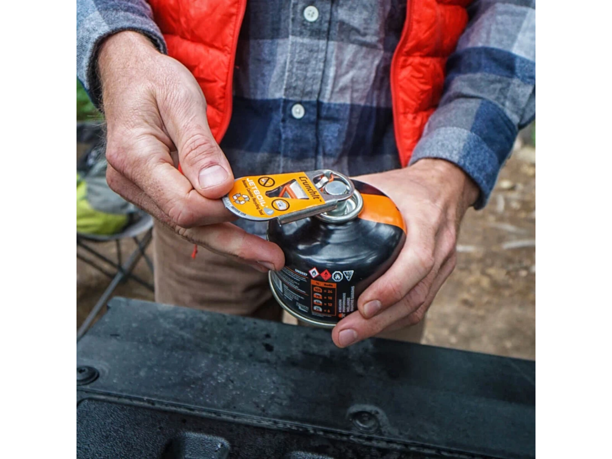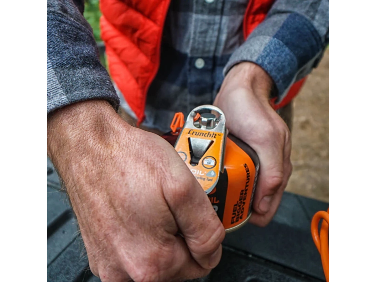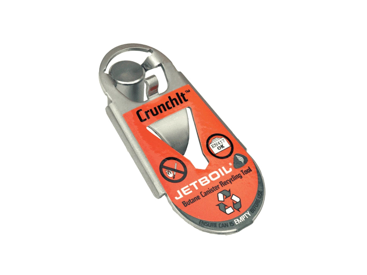 Safe, fool-proof, and compliant with recycling standards, CrunchIt punctures JetPower (and certain other) butane fuel canisters, making them recycling bin ready. Because there's nothing less efficient than throwing things away.
