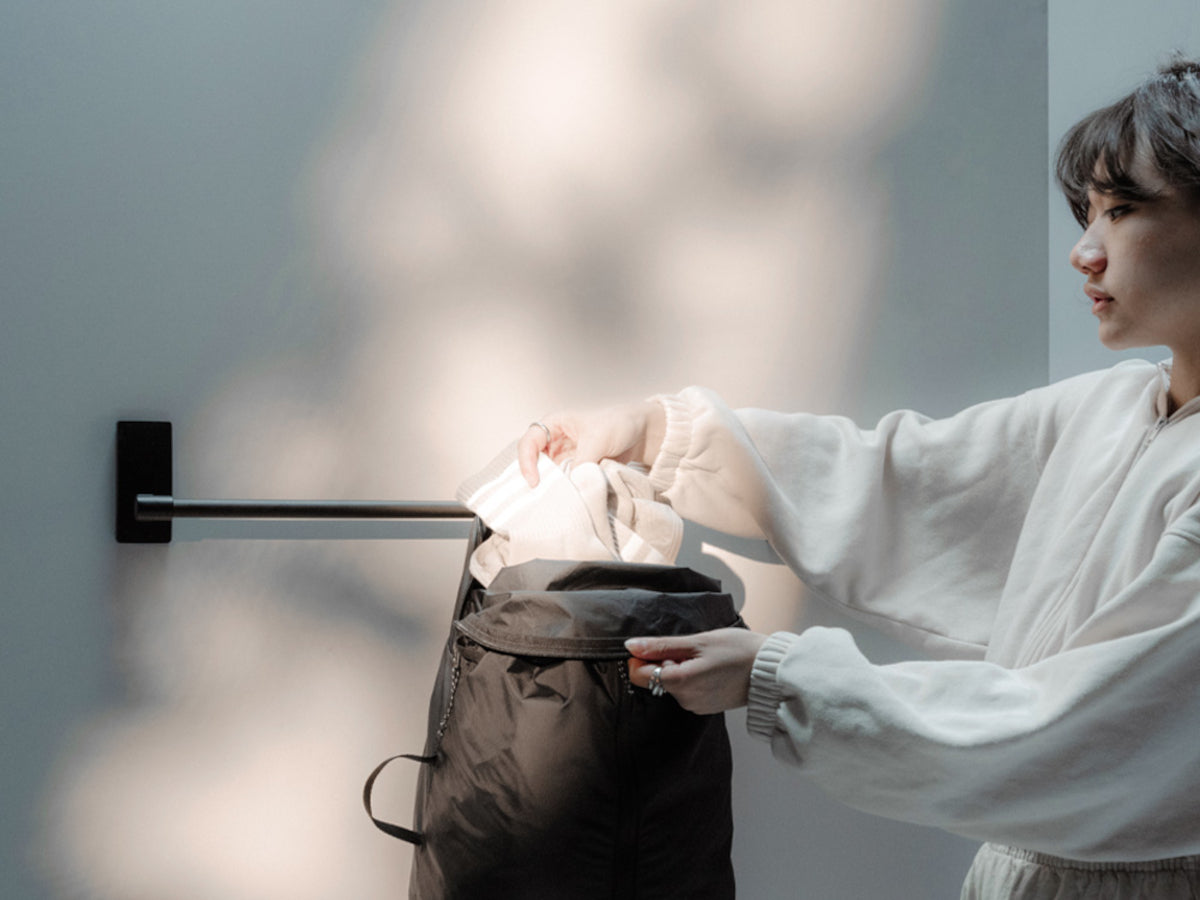 - Stuff-It pocket doubles as storage for detergent pods or laundromat change