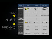 The NU25 is back lighter and more powerful than before with a dual beam spotlight and floodlight for a combined 400-lumen max that can reach out to 70 yards. Equipped with an upgraded unibody optical lens system switch freely between a primary spot LED, offering three brightness settings, to the flood LED for even wide illumination, ideal for close-up tasks and reading. Alternatively, switch to the dual red auxiliary LEDs and protect your night vision or long-lasting signal light. The NU25 is rated IP66 water resistant, features a bold new aerodynamic unibody design that efficiently dissipates heat, and looks stylish to boot.